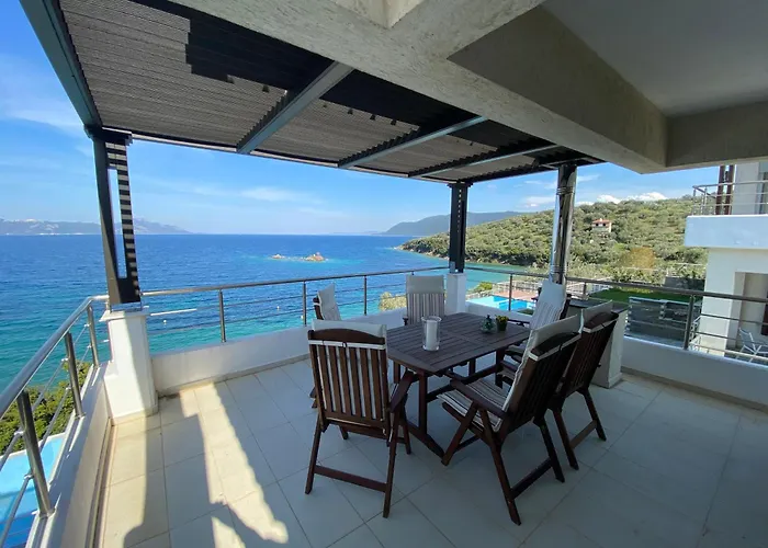 Villa Seaview设有水上乐园,季节性的室外游泳池 和日光浴,在Lefki Beach旁边. 2间卧室配有露台,阳台 和梳妆室.